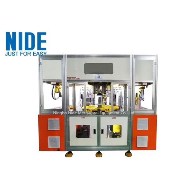 Designed as three winding stations and one coil inserting station, which collects A-phase winding, phase-to-phase insulation ferrule, groove-making, B-phase winding, phase-to-phase insulation ferrule, C Phase winding wire weaving, phase-to-phase insulation ferrule on one machine.